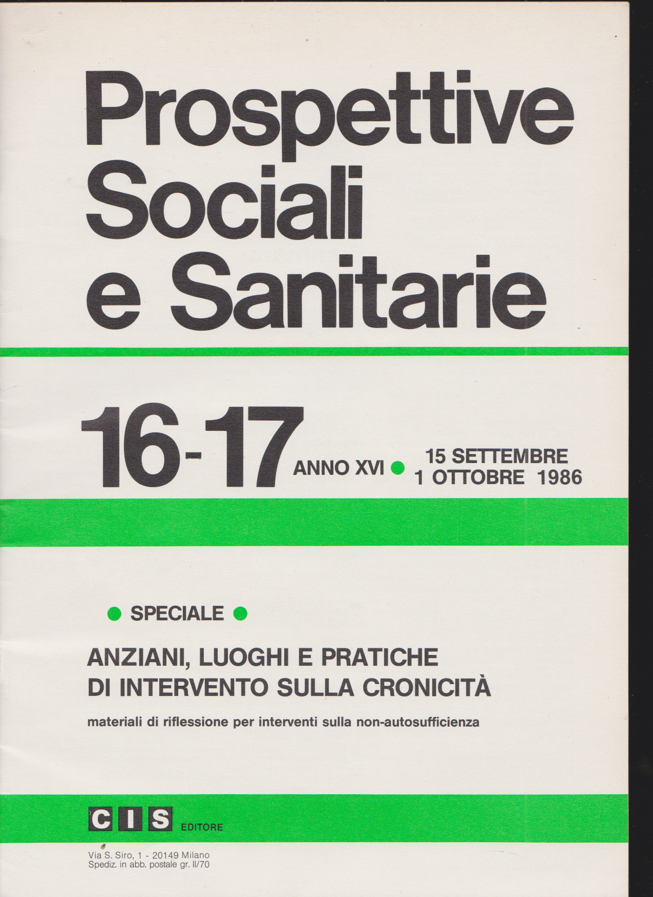 ANZIANI, LUOGHI E PRATICHE DI INTERVENTO SULLA CRONICITA’. materiali di riflessione per interventi sulla non-autosufficienza, speciale di Prospettive sociali e sanitarie, n. 16-17, 1986. Indice della rivista