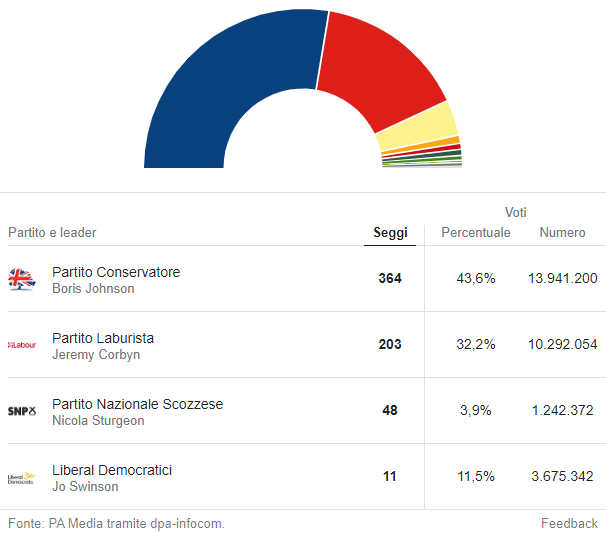 ELEZIONI BRITANNICHE. VINCE IL PARTITO CONSERVATORE DI BORIS JOHNSON