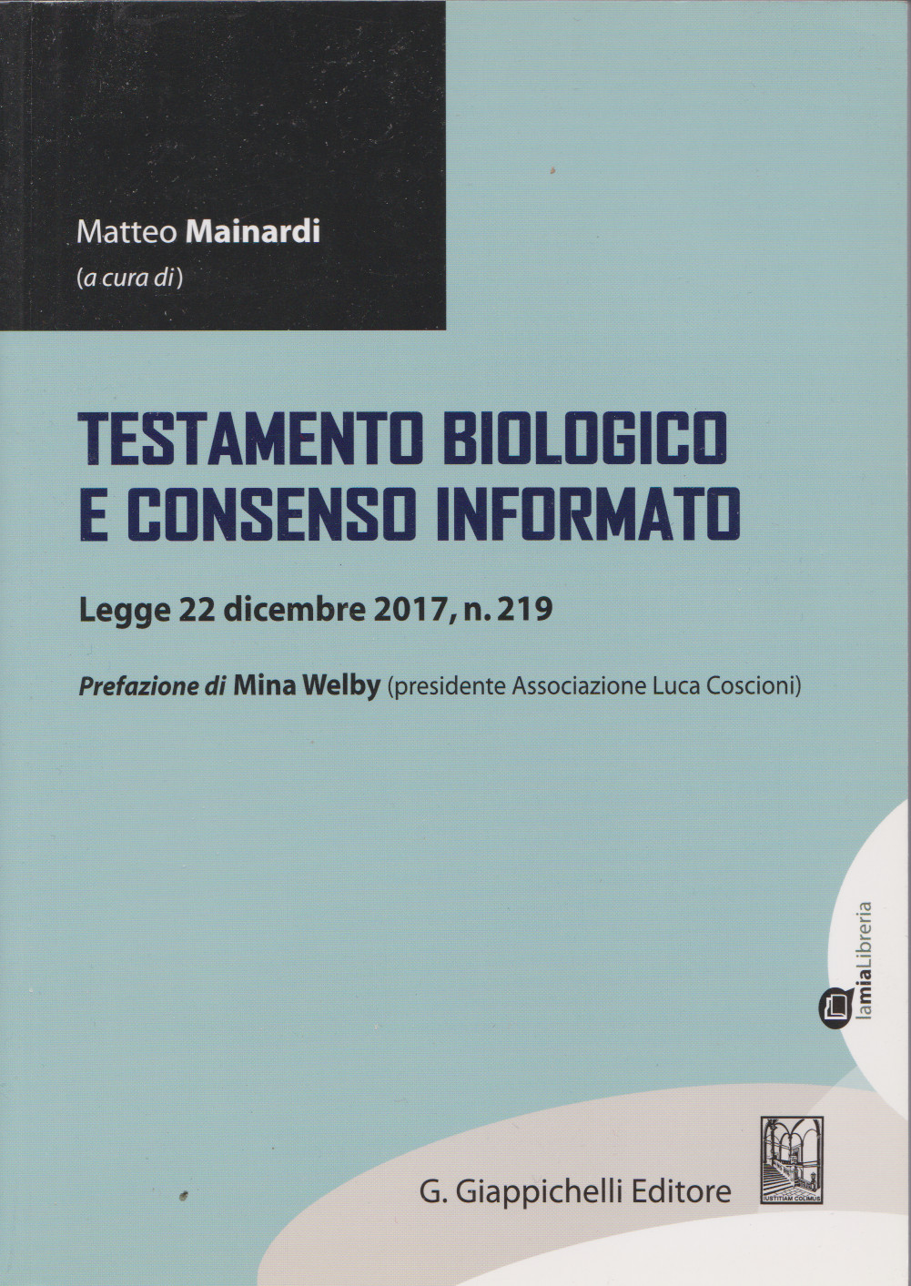 MAINARDI Matteo (a cura di), Testamento biologico e consenso informato. Legge 22 dicembre 2017 n. 219, prefazione di Mina Welby, Giappichelli editore, 2018