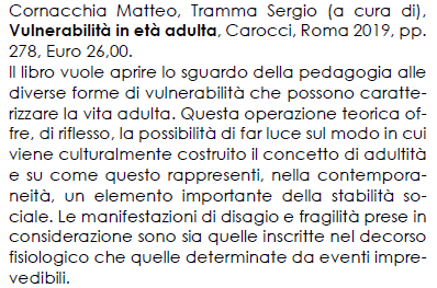 Cornacchia Matteo, Tramma Sergio (a cura di), Vulnerabilità in età adulta, Carocci, 2019