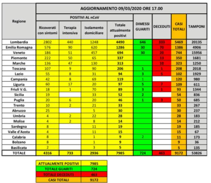 Coronavirus in Italia, 9.172 casi e 463 morti: il bollettino del 9 marzo – Corriere.it
