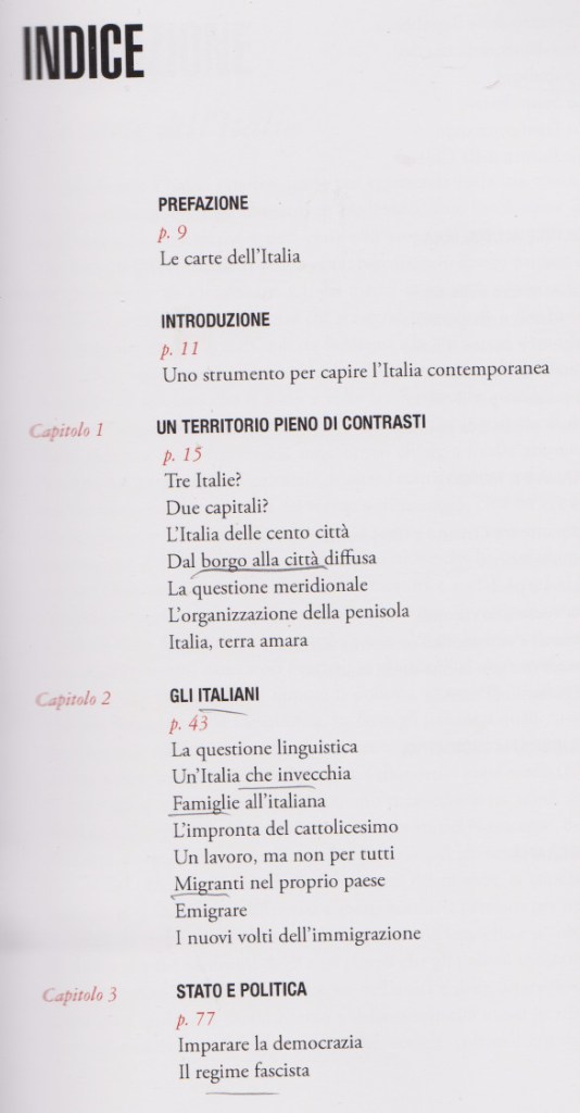 DELPIROU Aurelien, MOURLANE Stephane, L’Italia contemporanea in 100 mappe, Leg edizioni, 2020. Indice del libro