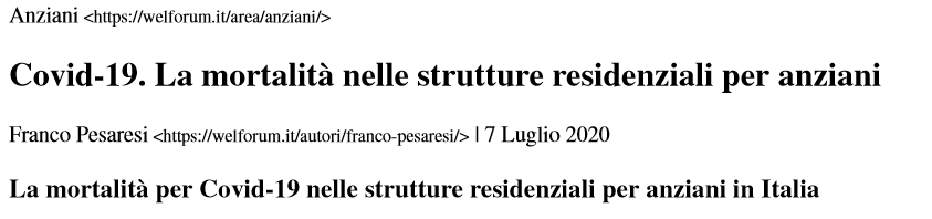 Coronavirus. La mortalità nelle strutture residenziali per anziani