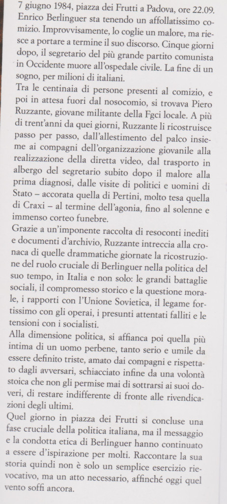 Il libro che Piero Ruzzante ha scritto insieme ad Antonio Martini e ha da poco pubblicato per Utet (Eppure il vento soffia ancora) non è un saggio su Enrico Berlinguer. È un diario, un album di memorie, individuali e collettive, che ripercorre con grande rigore, ora dopo ora, gli ultimi giorni della vita del segretario comunista.