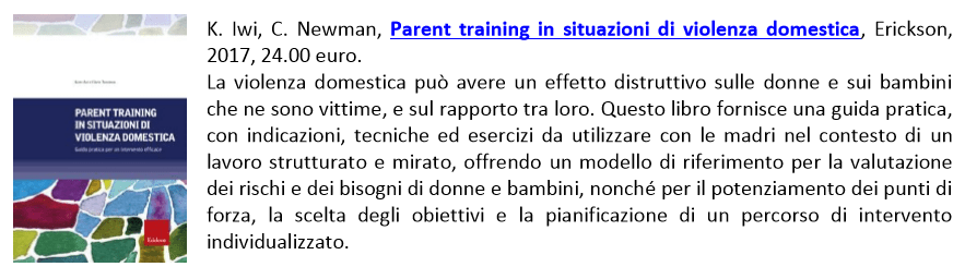 IWI K., NEWMAN C., parent training in situazioni di violenza domestica, Erickson, 2017