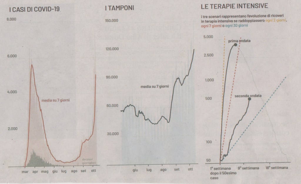 dati statistici su: CASI DI COVID (marzo/ottobre 2020); TAMPONI (giugno /ottobre 2020); TERAPIE INTENSIVE (in prima e seconda ondata)