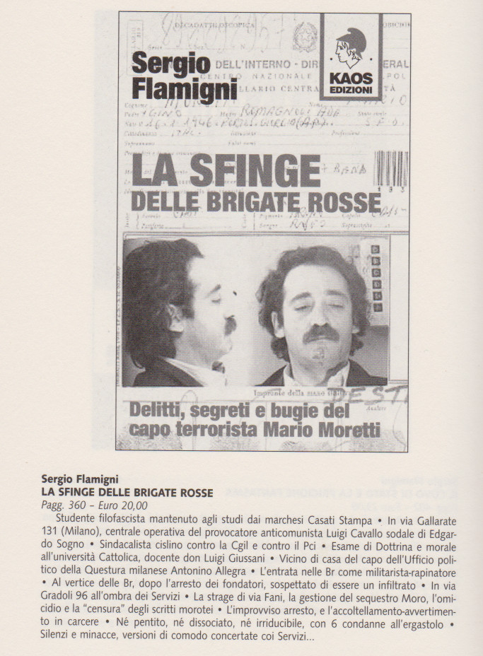 Sergio FLAMIGNI, La sfinge delle brigate rosse. Delitti, segreti e bugie del capo terrorista mario moretti, Kaos edizioni, 2004