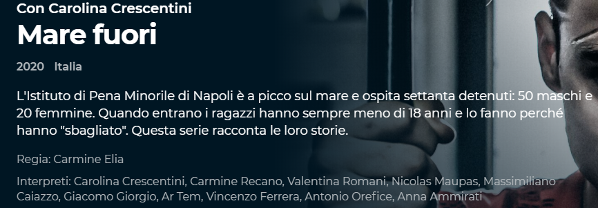 Mare fuori, serie televisiva trasmessa dal 23 settembre 2020 su Rai 2 – scheda in Wikipedia