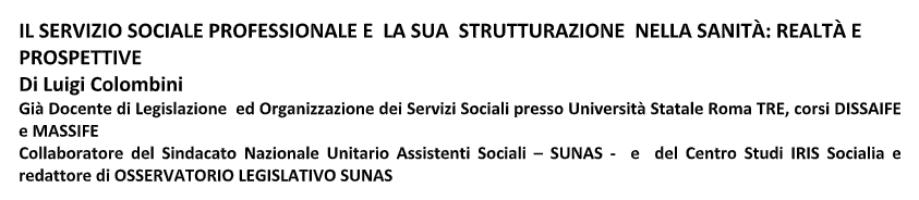 IL SERVIZIO SOCIALE PROFESSIONALE E LA SUA STRUTTURAZIONE NELLA SANITÀ: REALTÀ e PROSPETTIVE, Luigi Colombini, 2 novembre 2020
