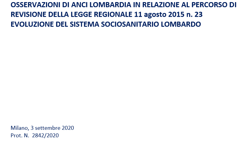 Osservazioni di ANCI LOMBARDIA in relazione al percorso di revisione della legge regionale 11 agosto 2015 n. 23, evoluzione del sistema sociosanitario lombardo, 3 settembre 2020