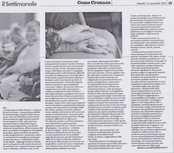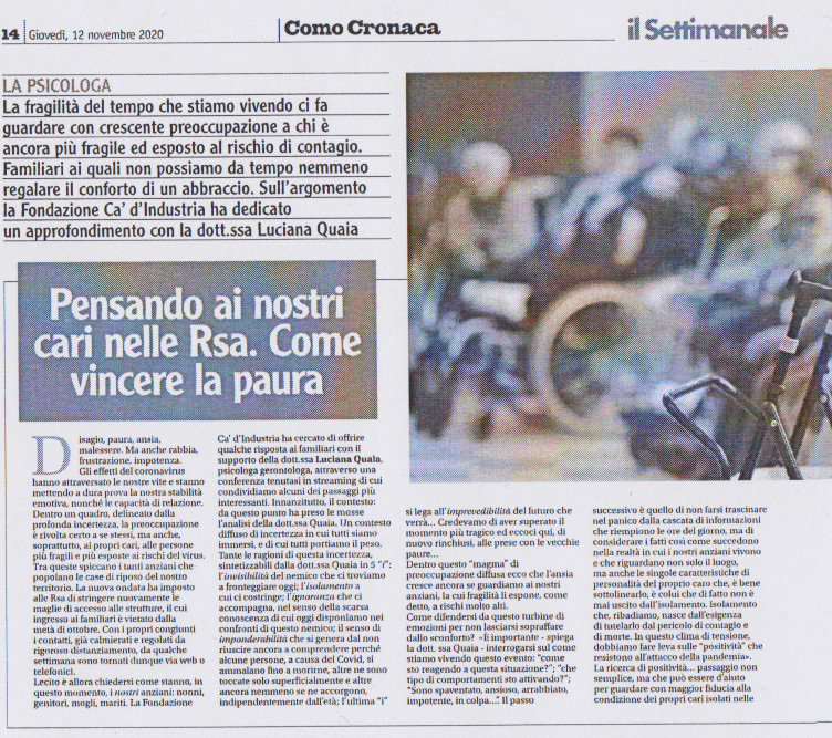 La Fondazione Ca’ d’Industria di Como ha cercato di offrire qualche risposta ai familiari con il supporto della dott.ssa Luciana Quaia, psicologa gerontologa, attraverso una conferenza tenutasi in streaming di cui condividiamo alcuni dei passaggi più interessanti.
