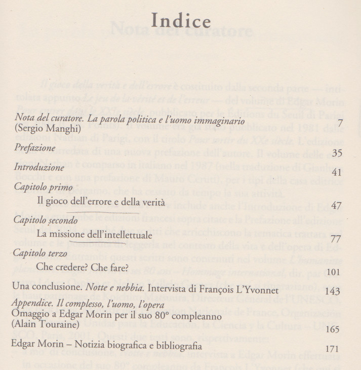 Edgar MORIN, Il gioco della verità e dell’errore. Rigenerare la parola politica, Erickson, 2009