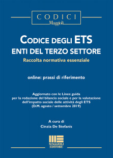 | CODICE DEGLI ETS ENTI DEL TERZO SETTORE Raccolta normativa essenziale online: prassi di riferimentoIl Codice degli ETS riunisce tutta la più significativa normativa in ambito di Enti del Terzo Settore, a partire dalla Legge delega di riforma del 2016, fino ad arrivare ai recentissimi Decreti ministeriali che dettano le Linee guida per la redazione del bilancio sociale (G.U. n. 186 del 9 agosto 2019) e per la valutazione dell’impatto sociale delle attività degli ETS (G.U. n. 214 del 12 settembre 2019). |