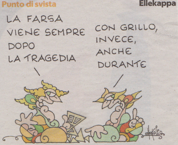 Ellekappa: “La farsa viene sempre dopo la tragedia” … “Con grillo , invece, anche durante”, in La Repubblica 5 dic 2020