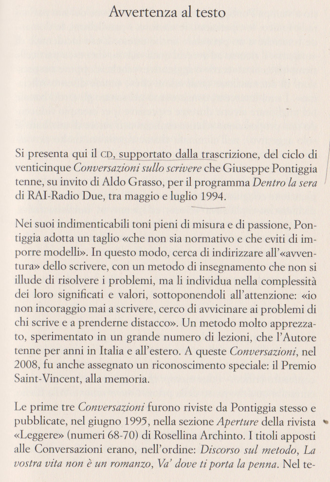 Giuseppe PONTIGGIA , Dentro la sera. Conversazioni sullo scrivere, Belleville editore, 2016