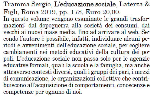 L’educazione sociale, di Sergio Tramma, Laterza, 2019