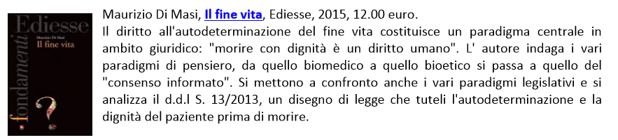 Il fine vita, di Maurizio Di Masi, Ediesse, 2015