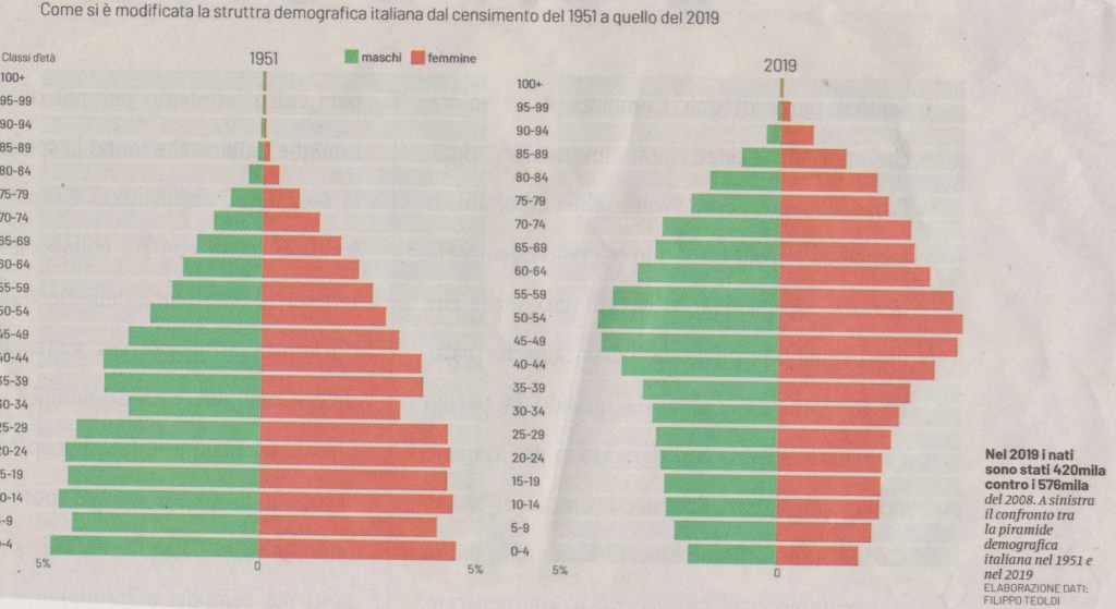 PIRAMIDE DEMOGRAFICA ITALIANA del 1951 e del 2019