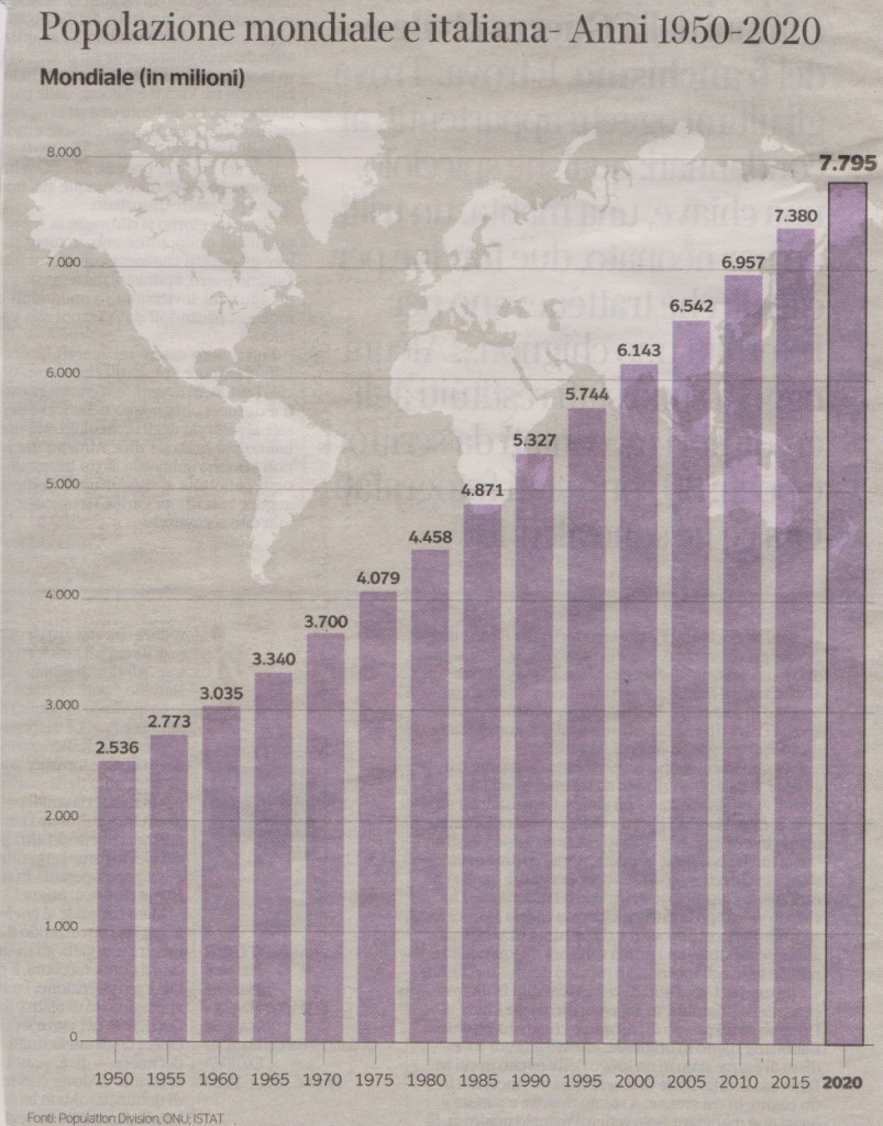 POPOLAZIONE MONDIALE E ITALIANA, anni 1950-2020