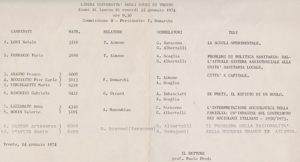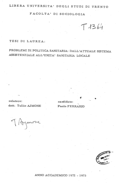 La tesi è depositata presso la Biblioteca della Università di Trento: