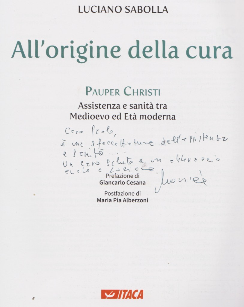 SABOLLA Luciano, All’origine della cura. Pauper Christi. Assistenza e sanità tra Medioevo ed Età Moderna, Itaca Edizioni, 2020