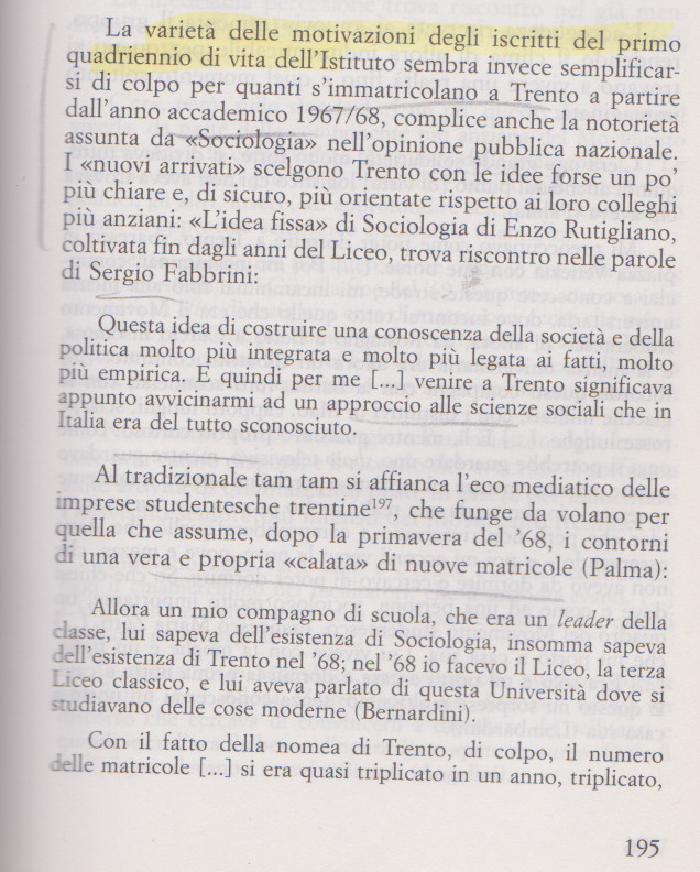 da https://mappeser.com/2021/02/26/giovanni-agostini-andrea-giorgi-leonardo-mineo-a-cura-di-la-memoria-delluniversita-le-fonti-orali-per-la-storia-delluniversita-degli-studi-di-trento-1962-1972-il-mulino-editore-2014/