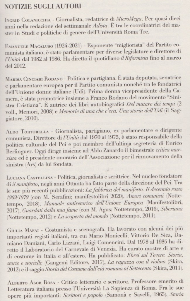 Politica italiana: Il PCI che ho vissuto, autori vari, in Micromega n. 1, 2021. Indice e biografie degli autori