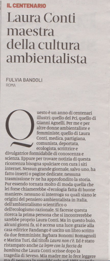LAURA CONTI maestra della cultura ambientalista, di Fulvia Bandoli, in Domani 28 marzo 2021