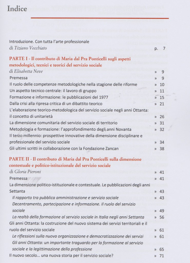Il testo si rivolge a studenti, operatori e docenti, proponendo un approfondimento della professione di assistente sociale attraverso la testimonianza diretta del percorso culturale di Maria Dal Pra Ponticelli.