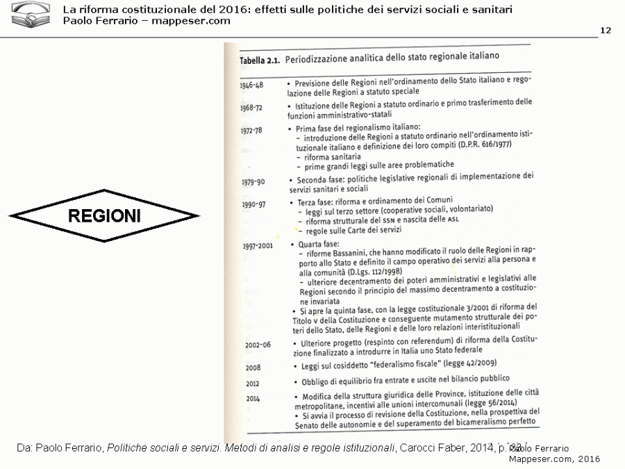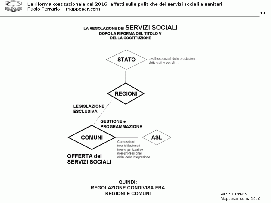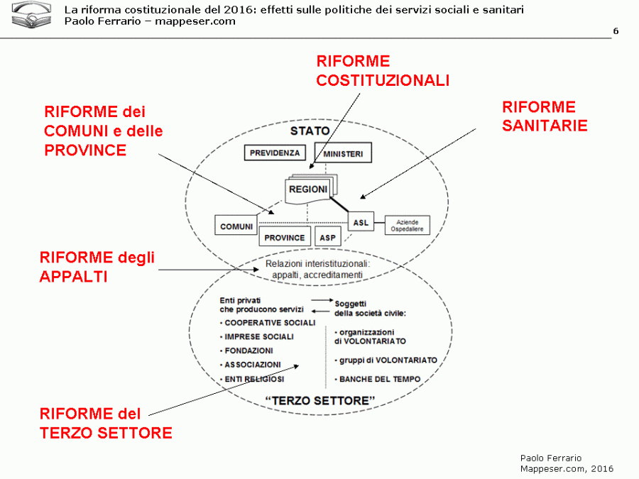 Dispensa di Paolo Ferrario elaborata sulla base del capitolo 2 del libro: Politiche sociali e servizi, Carocci Faber, 2014 e in occasione del tentativo di riforma costituzionale del 2016.