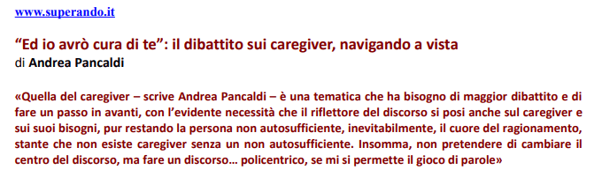 Andrea Pancaldi, “Ed io avrò cura di te”: il dibattito sui caregiver, navigando a vista, in superando.it