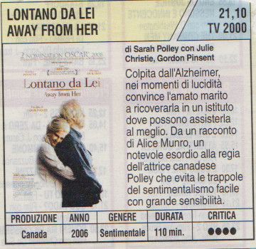 LONTANO DA LEI – AWAY FROM HER, di Sarah Polley, con Julie Christie, Gordon Pinsent, 2006