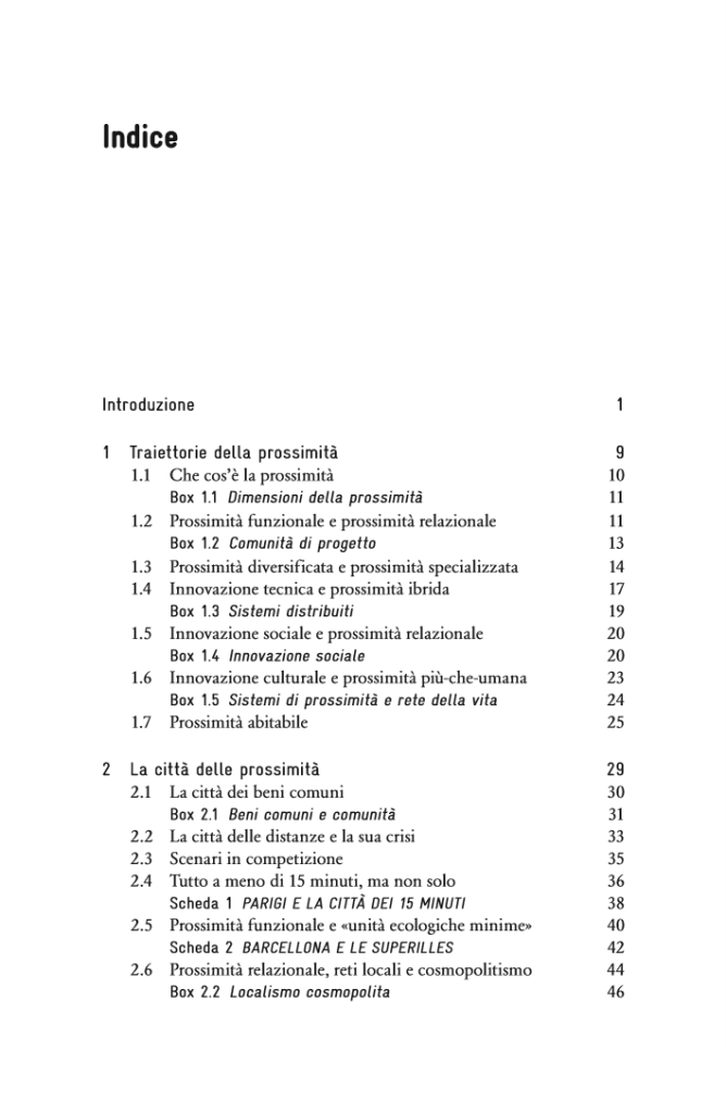 Nel libro, Ezio Manzini parte dallo studio di esempi concreti (La ville du quart’heure, di Parigi, le Superillas di Barcellona, la Milano di WeMi e della riqualificazione delle periferie) per analizzarli e integrarli in una visione di insieme che permetta di costruire un modello di riferimento in grado di affrontare le sfide di oggi e di domani.