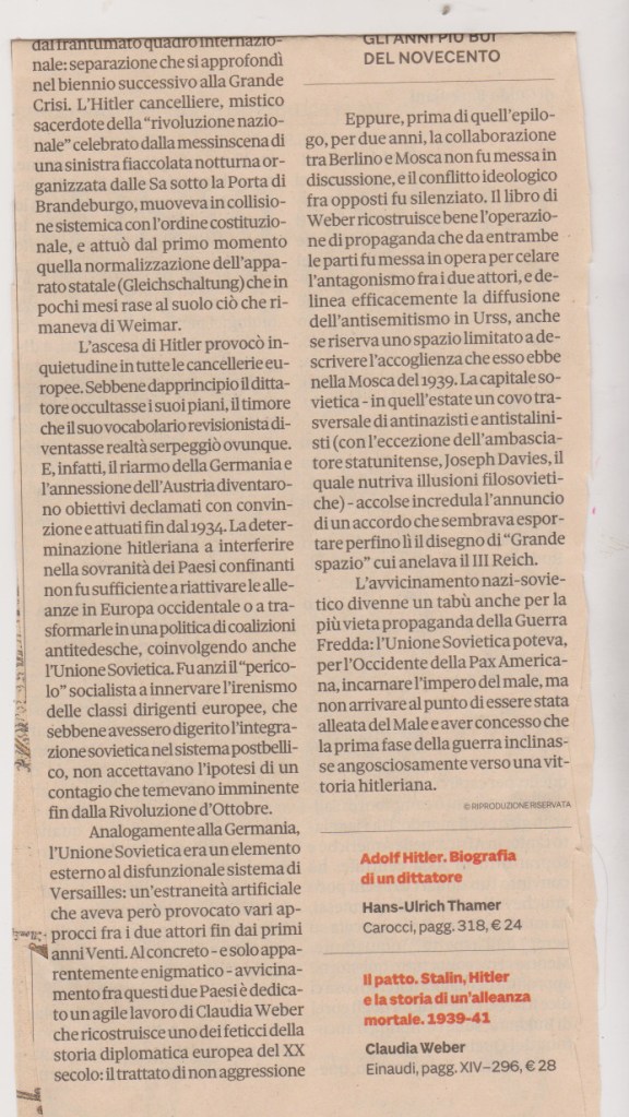 Il patto. Stalin, Hitler e la storia di un’alleanza mortale. 1939-41, di Claudia Weber, Einaudi, 2021