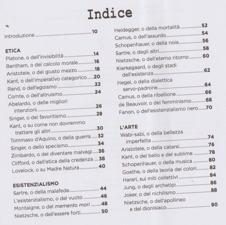 THOMPSON Jonny, Filosofia in breve. 150 grandi idee in poche parole, Corbaccio, 2021. Indice del libro
