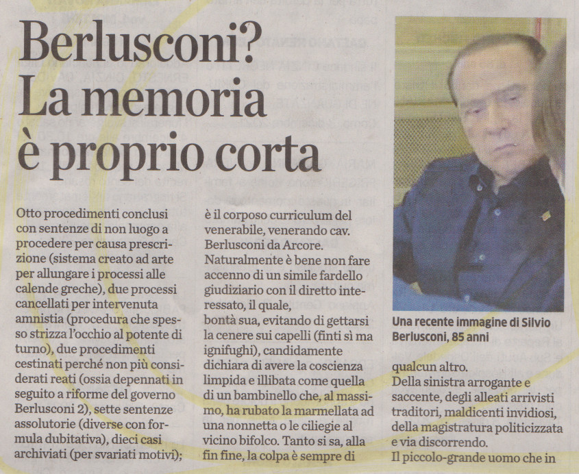 berlusconi? La memoria è proprio corta, lettera al quotidiano La Provincia, 3 dic 21