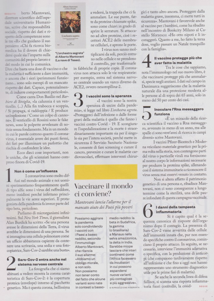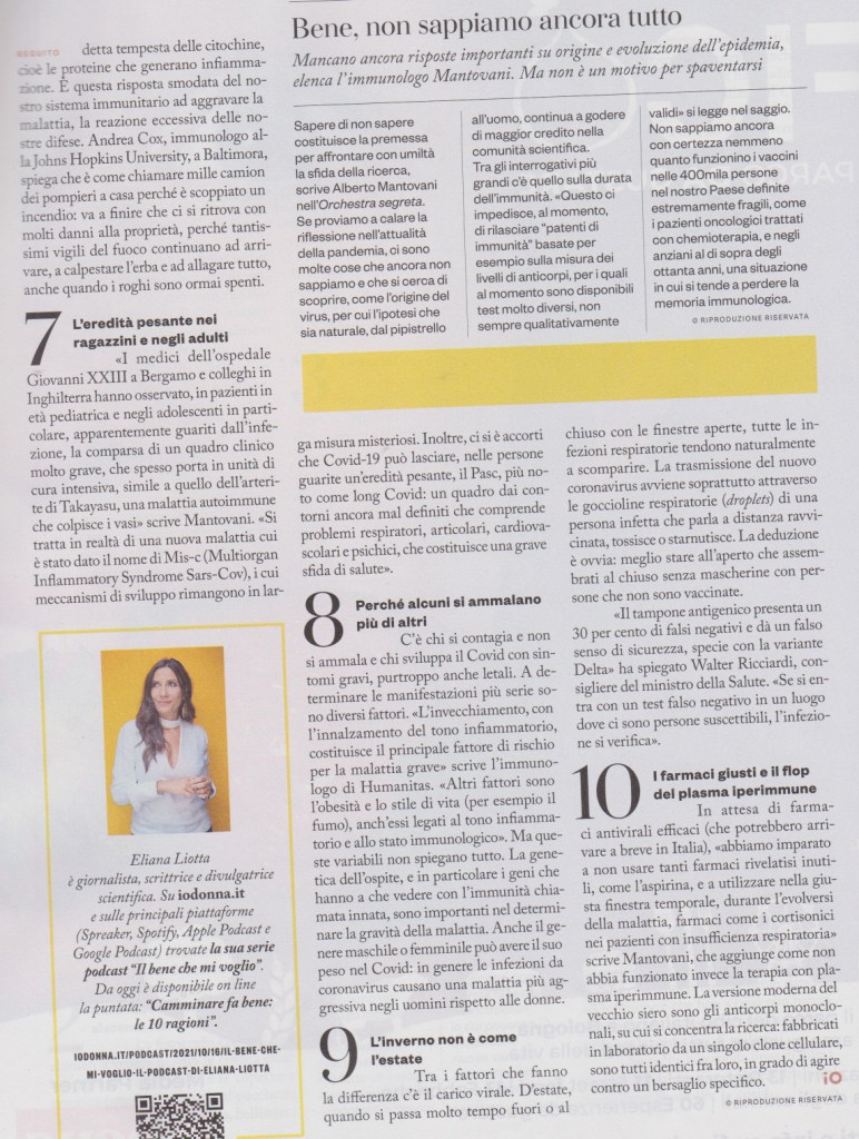 Con COVID-19 l’immunologia è entrata prepotentemente nella vita di tutti. Parole come anticorpi, vaccini, sieri, linfociti T sono entrate nelle nostre case, a volte in modo inappropriato. A questo punto, forse, è utile capire come è fatto e come funziona il sistema immunitario, che è al tempo stesso un’orchestra dai molti strumenti, per mantenere la vita ordinata dell’organismo, e un esercito, per rispondere all’aggressione degli agenti microbici. Nel mondo infinitamente piccolo in cui si consumano queste battaglie, vivono e agiscono tanti protagonisti misconosciuti. Parleremo dunque dei fagociti, eroi senza ballate del sistema immunitario, scoperti a Messina dal biologo russo Elie Metchnikoff lavorando su una stella marina con una spina di rosa. Descriveremo le cellule sentinella e i recettori Toll-like scoperti una mattina di Pasqua in un laboratorio in Germania da Christiane Nüsslein-Volhard, mentre studiava il moscerino della frutta.