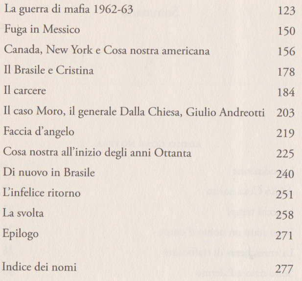 Una lunga vita fatta di illegalità, fughe, odio e pentimenti. Le incredibili vicende raccontate in prima persona da Tommaso Buscetta (Palermo 1928 – New York 2000) ci portano nel cuore di Cosa nostra e del fenomeno mafioso, e ci aiutano a capire un mondo che continua a suscitare enorme interesse e a sollecitare la fantasia creativa di scrittori e registi non solo italiani. Da Palermo all’America Latina, il contrabbando, le continue fughe in Messico, Svizzera, Canada, Stati Uniti (grazie anche a operazioni di chirurgia plastica), fino all’arresto, il carcere e la svolta che lo portò a diventare il primo grande pentito di mafia. Una cavalcata straordinaria di fatti e personaggi che incrocia vicende personali (il tentato suicidio, la morte di ben undici suoi parenti nella guerra tra mafiosi), grande criminalità e affari di Stato come gli omicidi di Moro e Dalla Chiesa, e il ruolo di personaggi politici di primo piano, innanzitutto Andreotti.
