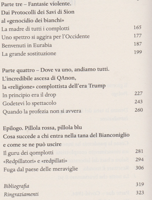 Partendo dai Protocolli dei Savi di Sion, passando per QAnon e spingendosi fino alla pandemia e all’assalto al Congresso degli Stati Uniti, Leonardo Bianchi costruisce un quadro organico delle teorie del complotto, spiegando come nascono, in che modo e perché si diffondono, e cosa rivelano della società in cui viviamo. Il tutto senza mai rinunciare a quel rigore dell’analisi e del giudizio che ne fanno una delle voci più credibili e potenti del giornalismo italiano.