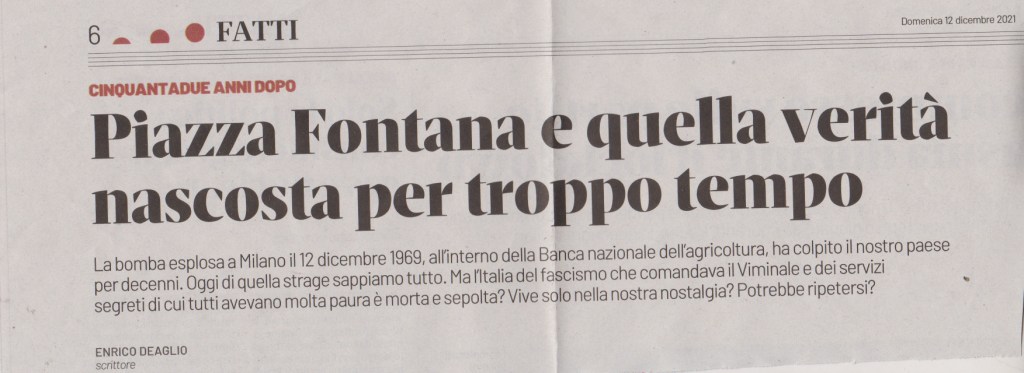 - La bomba esplosa a Milano il 12 dicembre 1969, all’interno della Banca nazionale dell’agricoltura, ha colpito il nostro paese per decenni.