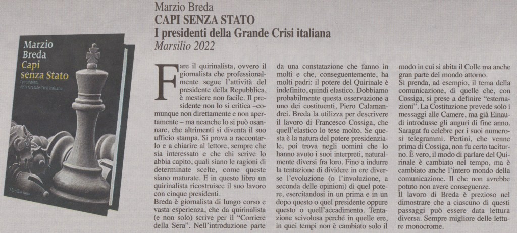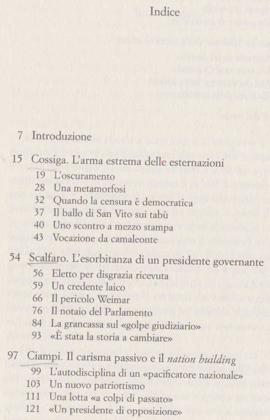 Marzio BREDA, Capi senza stato. I presidenti della grande crisi italiana, Marsilio, 2022. Indice del libro