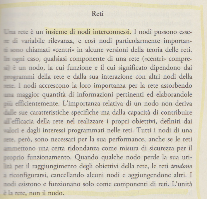 definizione delle RETI in Manuel Castells, Comunicazione e potere, Università Bocconi editore, 2009