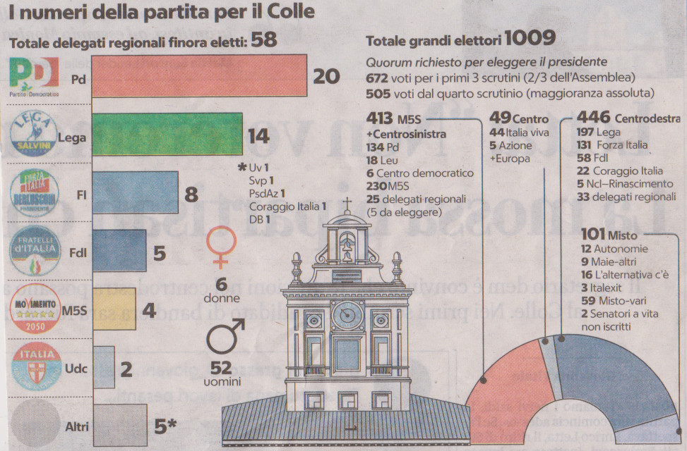 Gli elettori del PRESIDENTE DELLA REPUBBLCA, la composizione dei partiti, 24.1.2022