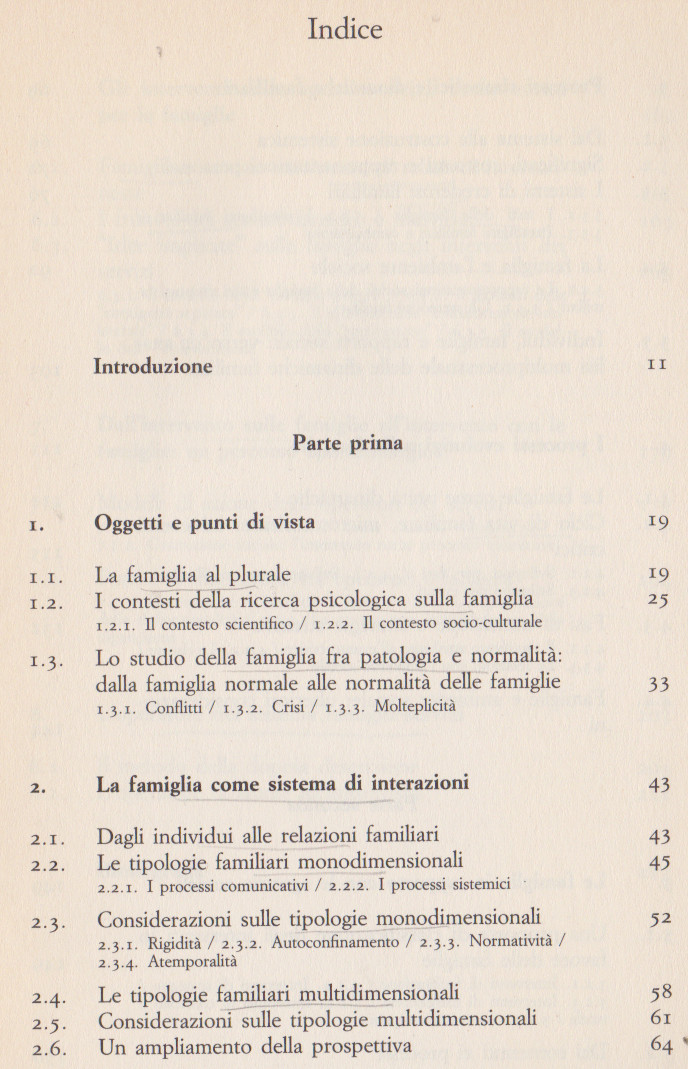 Laura Fruggeri, Famiglie. Dinamiche interpersonali e processi psico-sociali, La Nuova Italia Scientifica, 1997, Indice del libro