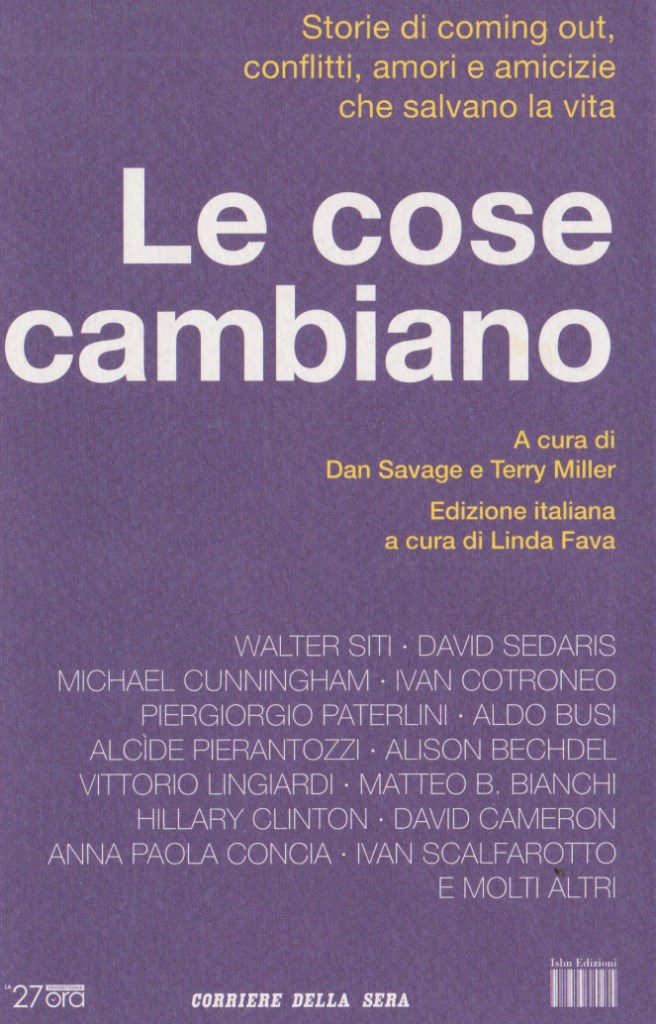 Le cose cambiano. Coming Out, conflitti, amori e amicizie che salvano la vita, a cura di Dan Savage e Terry Miller, edizione italiana a cura di Linda Fava, traduzione di Antonella Napolitano, Corriere della Sera, 2011