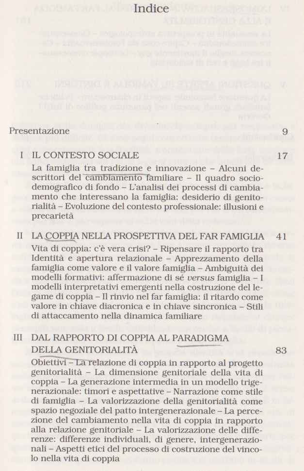 Paola Binetti, La famiglia tra tradizione e innovazione, edizioni Magi, 2009. Indice del libro