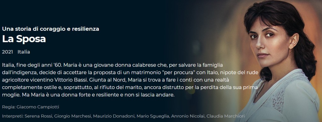 LA SPOSA, serie televisiva, regia di Giacomo Campiotti , con Serena Rossi RAI 1, gennaio/febbraio 2022