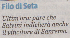 Ultim’ora: pare che salvini indicherà anche il vincitore di Sanremo, in Filo di Seta, La Provincia di Como, 31 gen 2022