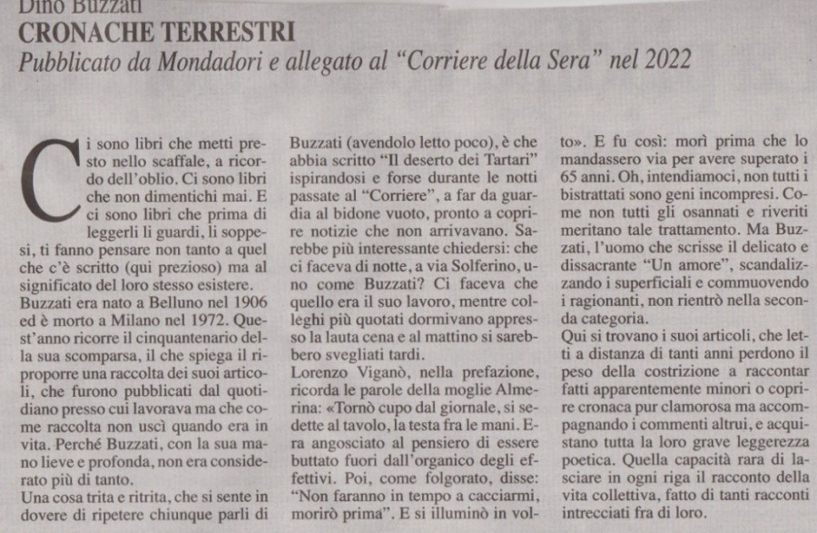 BUZZATI Dino , a cura di Domenico Porzio, prefazione di Lorenzo Viganò, CRONACHE TERRESTRI, Mondadori /Corriere della Sera, 2022