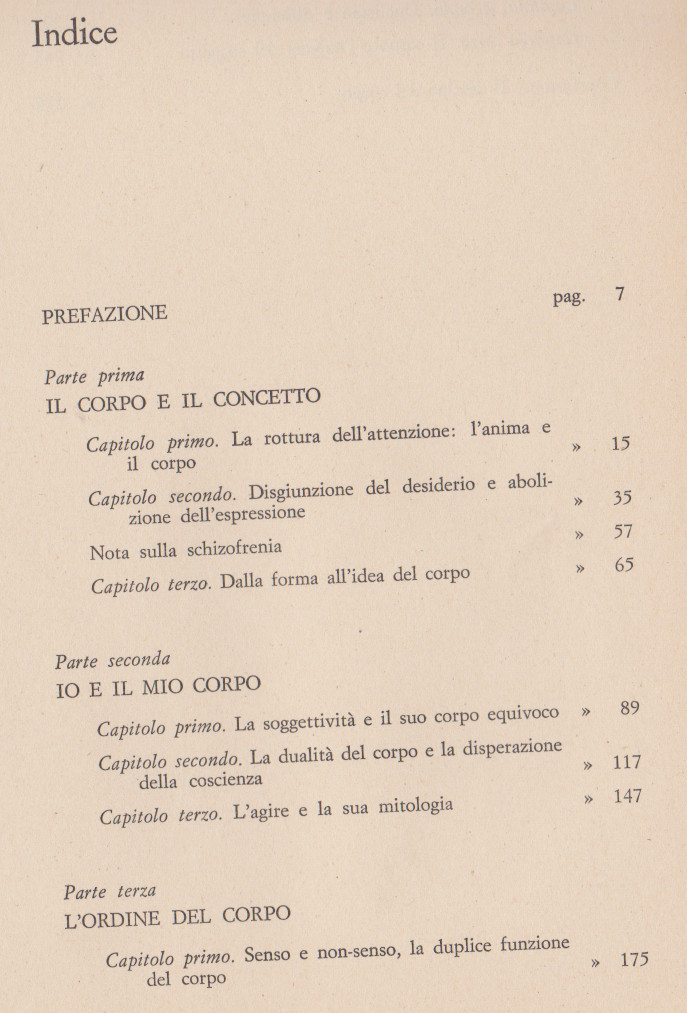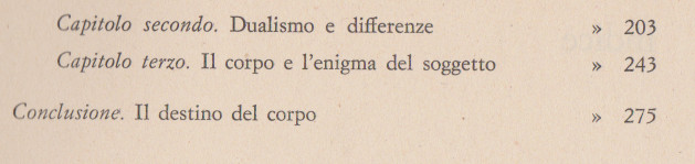 Claude BRUAIRE, Filosofia del corpo, edizioni Paoline, 1975. Indice del libro